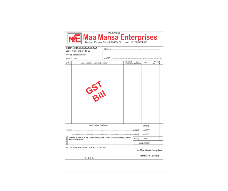 - GST Bill Book