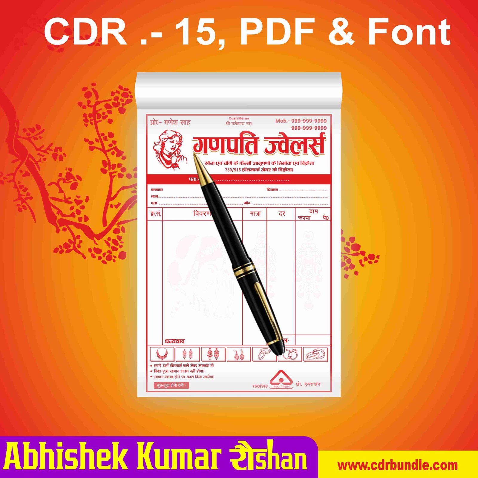 Latest And Best Jewellery Shop Bill book/Invoice Design file:- Cdr, PDF, Fonts